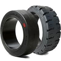 They are ideal for applications where frequent flat tires are a concern. While they are more expensive to purchase than pneumatic tires, they are economical when long-term usage is considered. A major downside to consider is that they are NOT usually field serviceable, and require a specialized press to install onto the wheels. These tires can be molded in normal tread patterns, but are available in smooth tread for warehouse applications, and also in non-marking compounds (recognizable by their light grey or white color). Non-marking tires do not allow the truck to dissipate static electricity very readily as they are less conductive, so a static strap must be used.