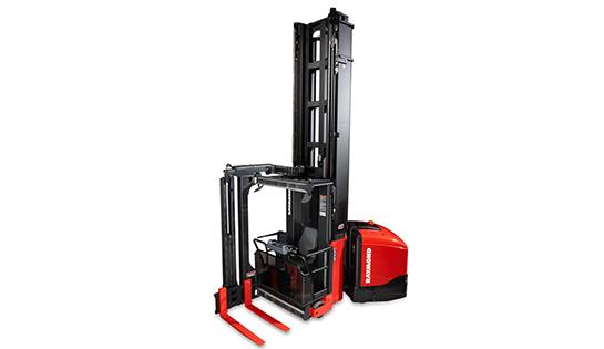 The Raymond 9600 Swing-Reach Truck provides efficient order picking and case picking versatility.